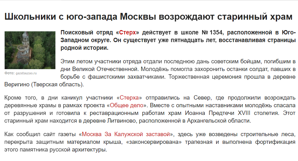 Школьники с юго-запада Москвы возрождают старинный храм (Москва. Без формата)
