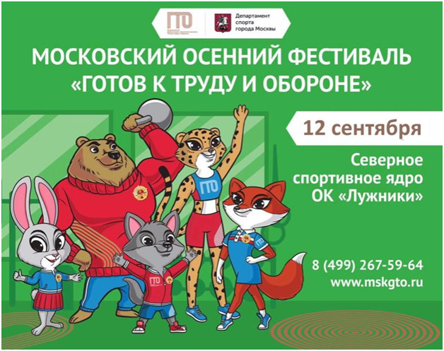 Москомспорт 12 сентября проводит Осенний фестиваль ВФСК ГТО в Лужниках.