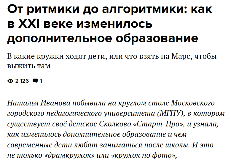 «Футурологи говорят о том, что через 20 лет многие профессии будут неактуальны. Сегодня заказчиком становится будущее. В прошлом году мы начали работу по развитию „Интернета вещей“ в рамках Junior Skills. В этом году, совместно с образовательным комплексом № 1354 разрабатываем компетенцию „автомобили“. Ребенок проходит весь процесс производства автомобилей и чувствует себя инженером-конструктором. Ему нужно спроектировать машину, создать её видеомодель, распечатать в 3D-принтере. И практически довести до стадии производства».