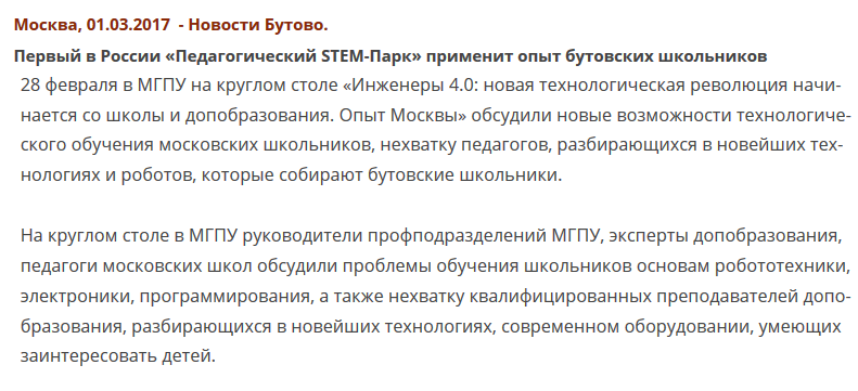 Первый в России «Педагогический STEM-Парк» применит опыт бутовских школьников