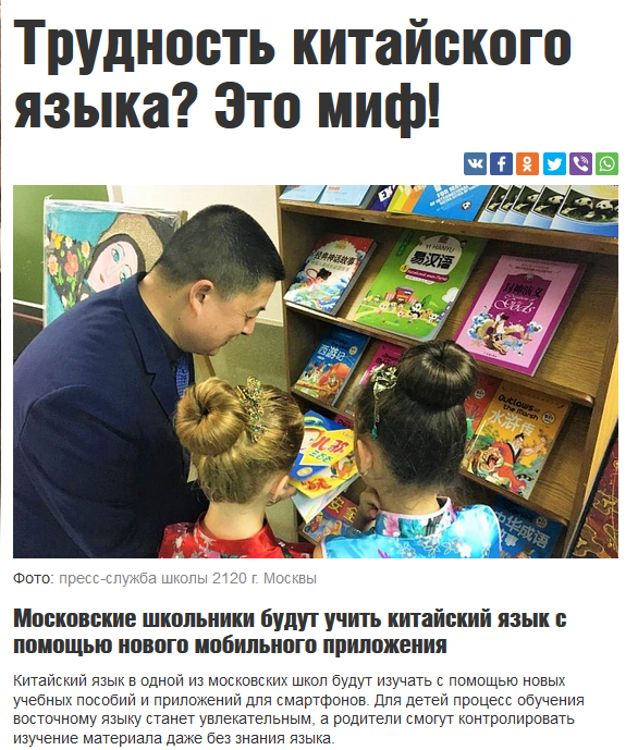 Китайский язык в одной из московских школ будут изучать с помощью новых учебных пособий и приложений для смартфонов. Для детей процесс обучения восточному языку станет увлекательным, а родители смогут контролировать изучение материала даже без знания языка.