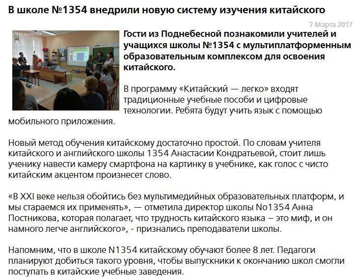Гости из Поднебесной познакомили учителей и учащихся школы №1354 с мультиплатформенным образовательным комплексом для освоения китайского.