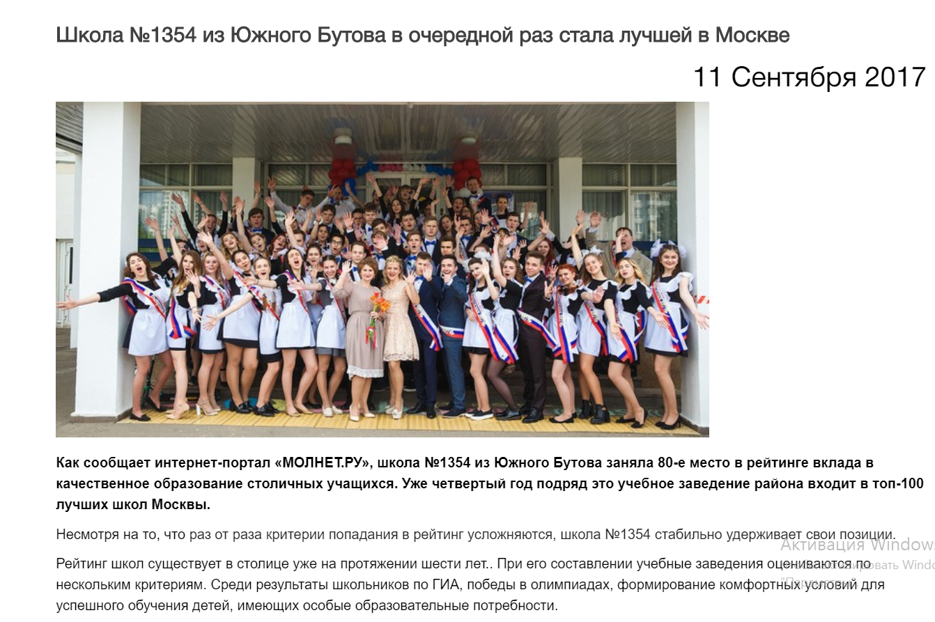 Школа №1354 из Южного Бутова в очередной раз стала лучшей в Москве