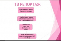 8 апреля» ученики 10 «Ж», 7 "Я", 7 "Р" классов посетили очередное занятие цикла «Основы журналистики «Телевизионные жанры: документальное кино»». Ребята продолжили разговор о разнообразии жанров телевизионной журналистики, на занятии педагог рассказала о жанре документального кино, его особенностях и видах. Слушатели узнали, как создаётся документальное кино, какие приёмы используются для достижения желаемого эффекта. Лектор показала конкретные примеры документальных фильмов и передач